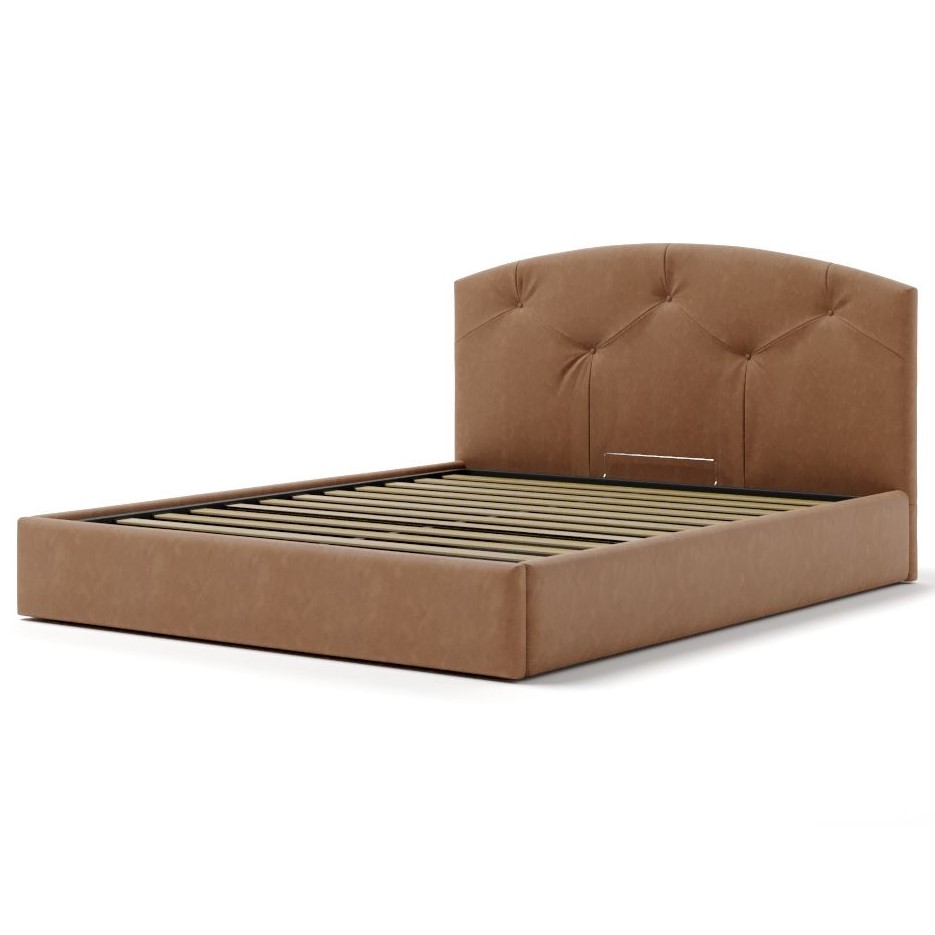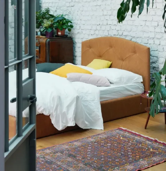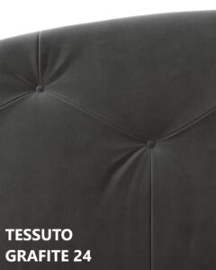 Letto matrimoniale contenitore in tessuto. Rete ortopedica in legno di betulla con palo centrale di sostegno. Contenitore altezza 25 cm con fondo in feltro salva pavimento. Ingombro totale letto L. 174 cm – P. 205 cm – H. 105 cm