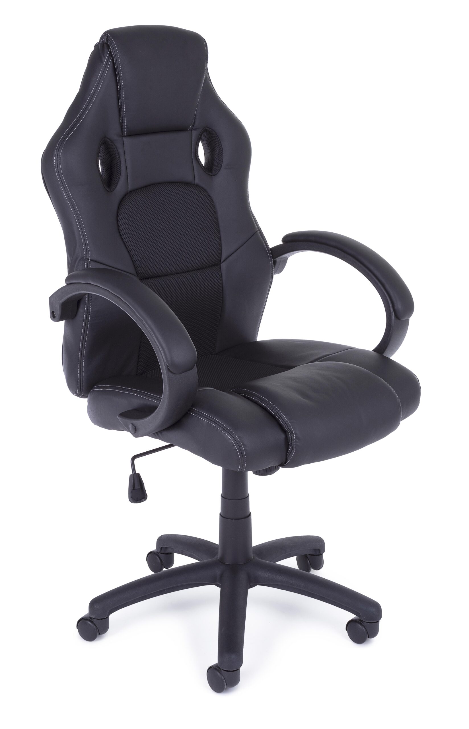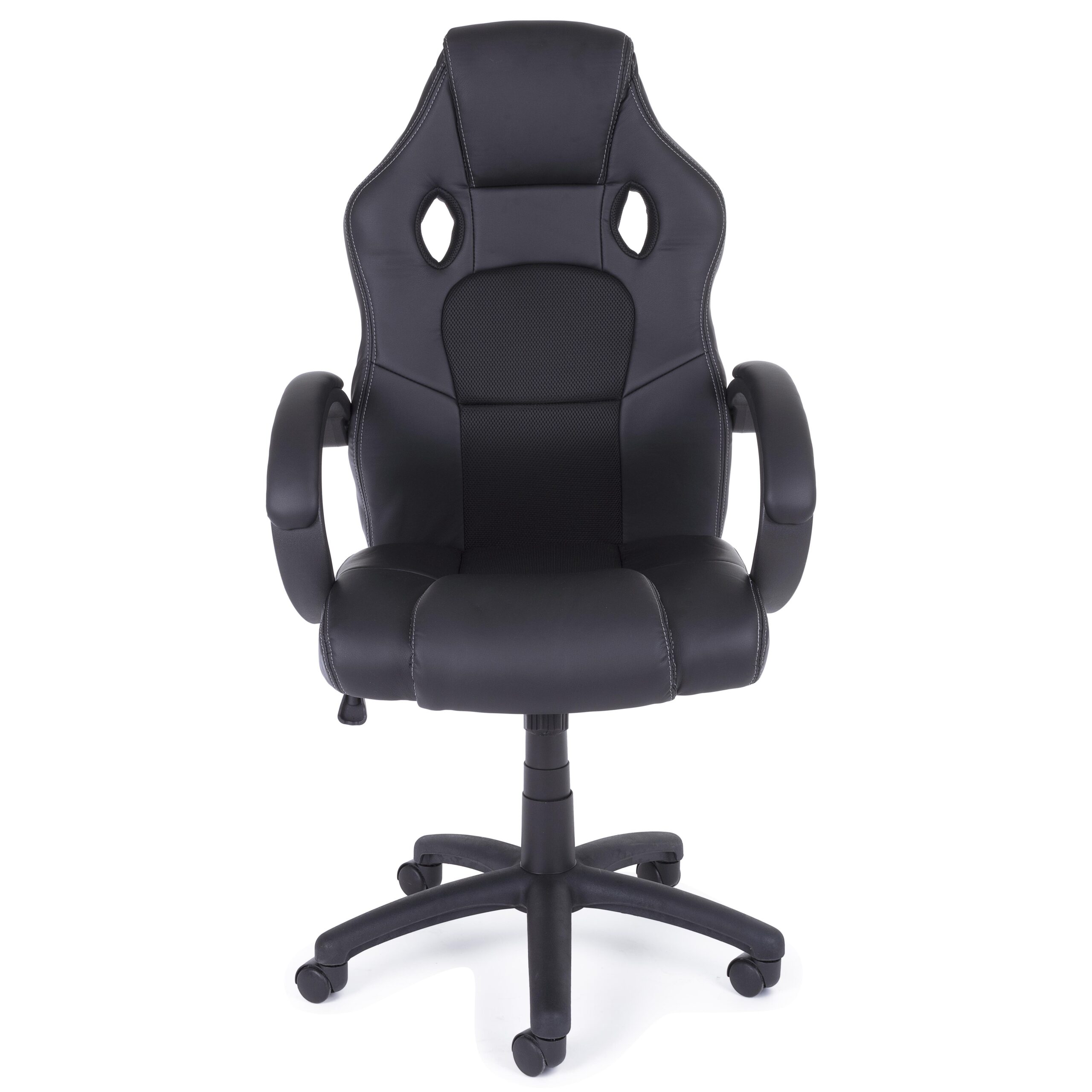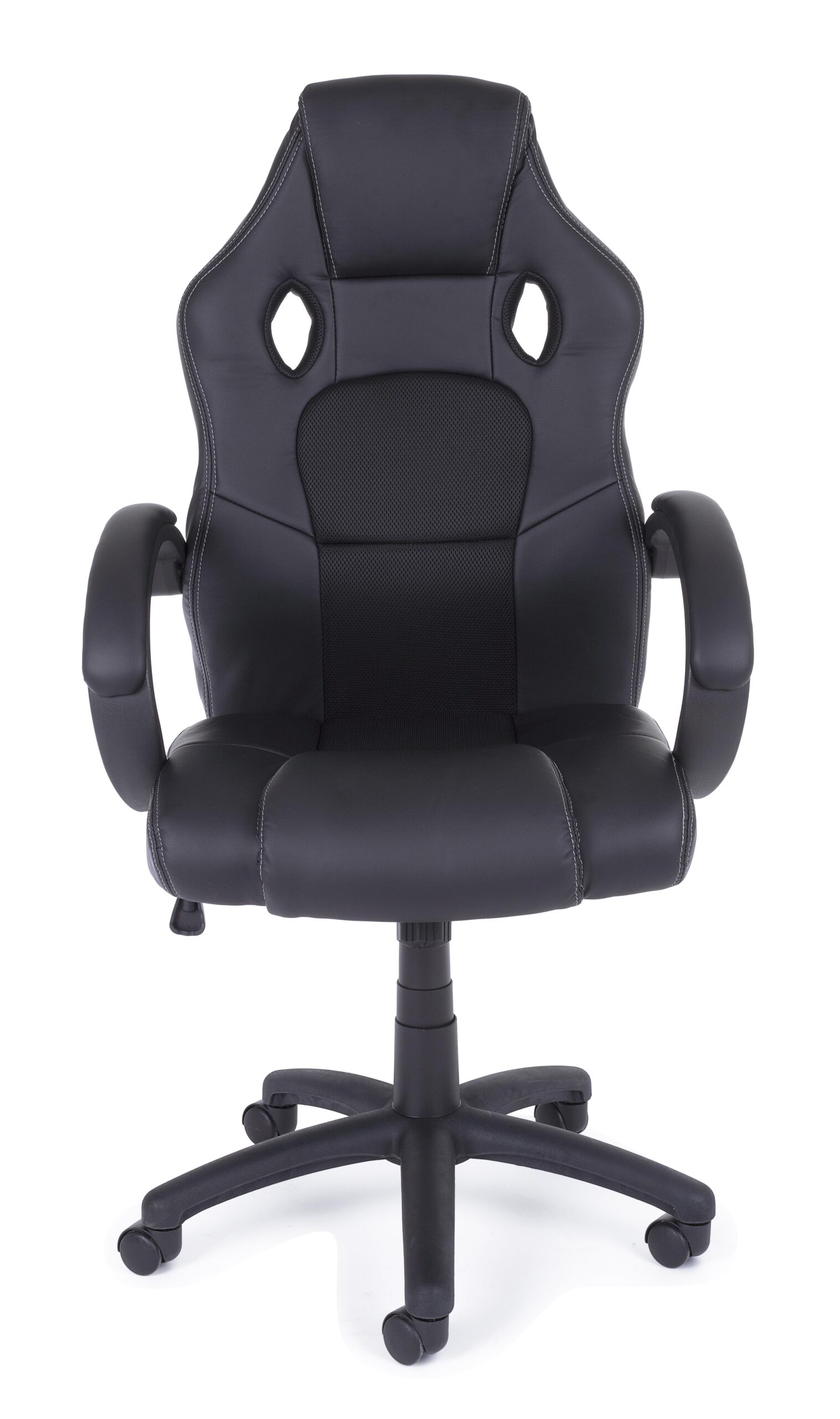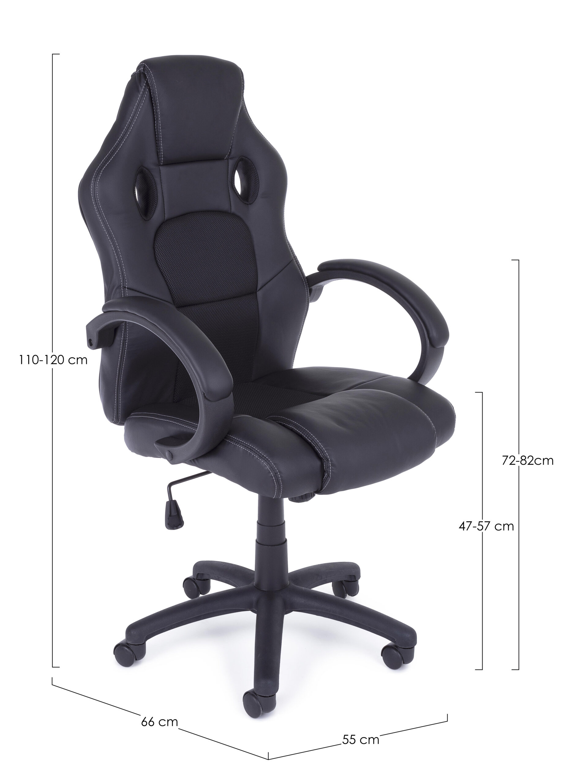 Sedia da ufficio/gaming. Base in nylon ø60cm. ruote in nylon. seduta e schienale imbottiti con rivestimento in rete ed similpelle. schienale provvisto di supporto lombare. braccioli in plastica (pp) con parte superiore rivestita in similpelle. Altezza regolabile. Da assemblare.