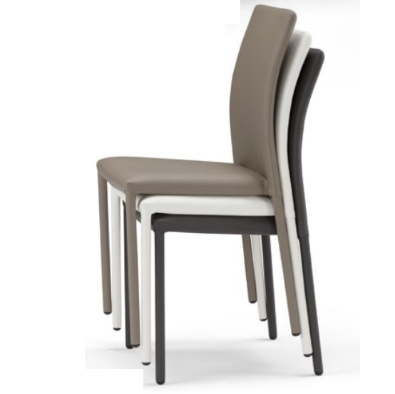 Sedia SD09 in ecopelle nera – Imba. Struttura sedia in metallo, imbottitura gomma alta densità e rivestimento in ecopelle nero.